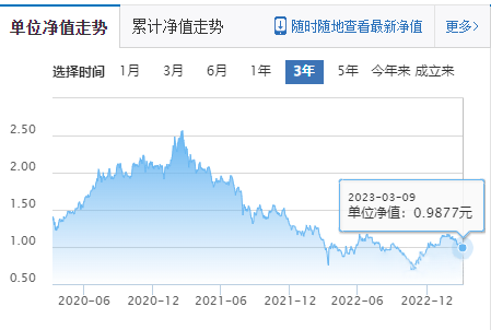 比如投资腾讯、阿里的中概互联基金,2021 年年初时价格还在 2 块多/份,如今已经跌到 9 毛钱左右了,跌幅超过 60%。
