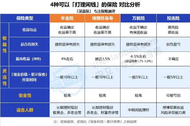 前面也提到,年金险和增额终身寿在储蓄险中算是风险较低、收益较稳的两类产品;