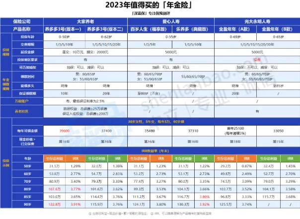 B款只能保到85岁,但资金增值速度更快,而且到了85岁能一次性领10倍养老金,IRR能达到3.68%,也是比较亮眼的。
