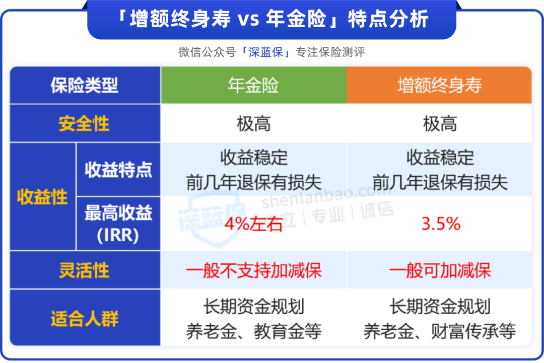 如果手里有点钱想做长远打算,留待10年、20年后使用,其实可以考虑安全性更强、长期收益也很不错的储蓄型保险,比如增额终身寿。