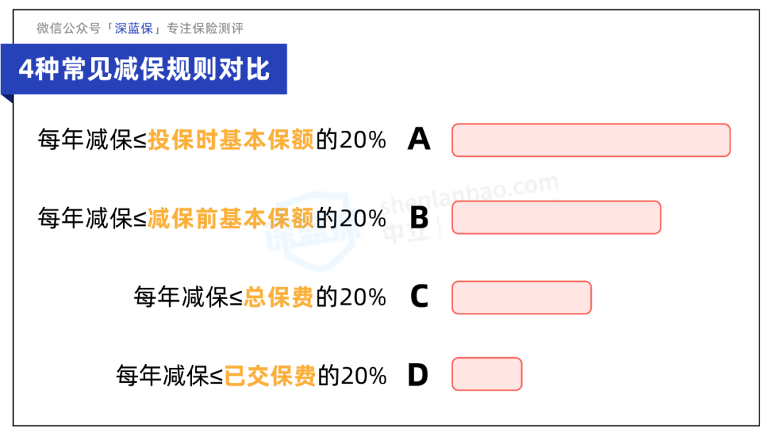 我们总结了 4 种常见的减保规则,并按照上限高低分为了 A~D,如下图所示: