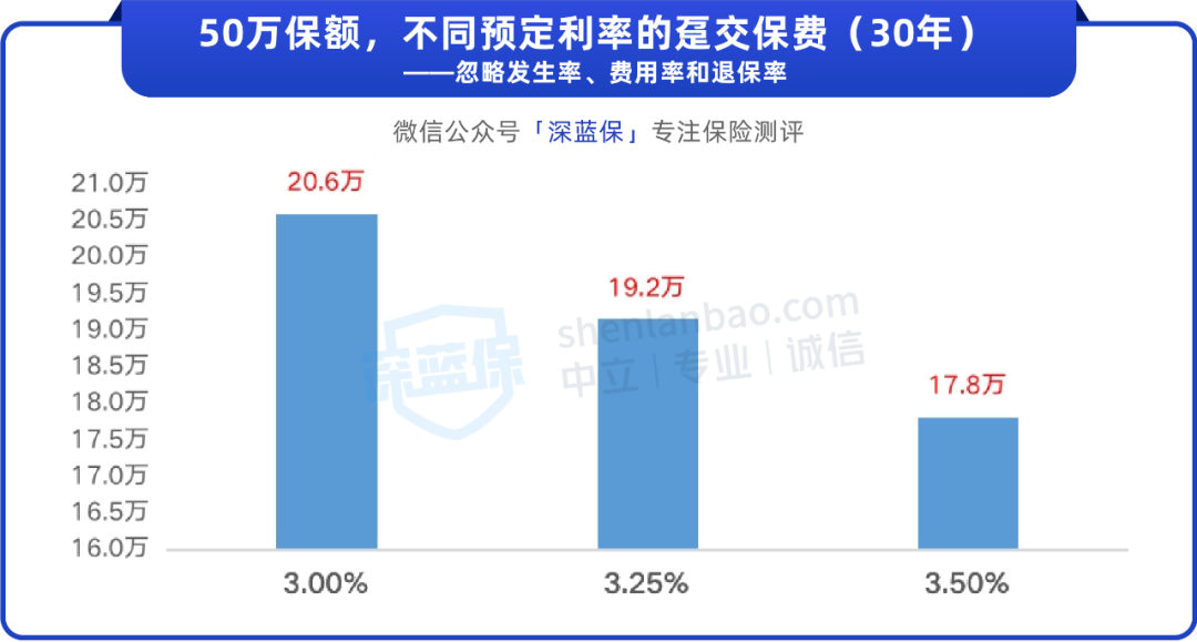 对于重疾险、寿险而言,我们投保时会明确保额。那么同样的 50 万保额,不同预定利率下的保费会有什么差别呢?