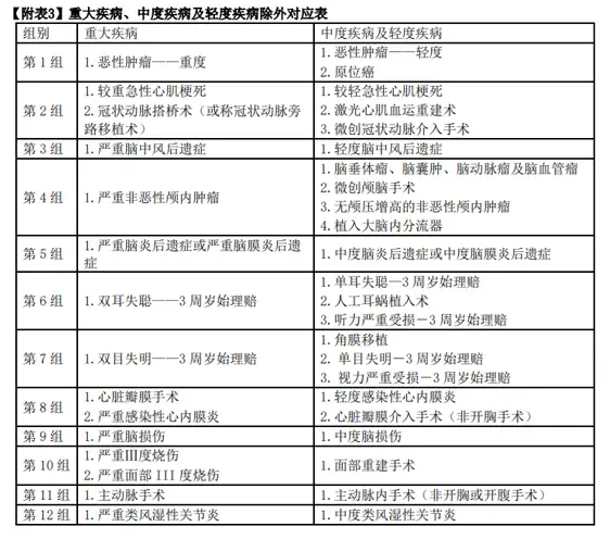 比如,先得了图中第一组里的恶性肿瘤-重度,同组的恶性肿瘤-轻度和原位癌就直接失效了,不能再赔了。