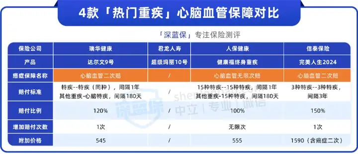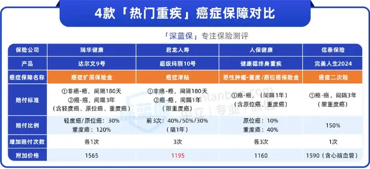 相比之下,达尔文9号和完美人生虽然赔付比例更高,但两次癌症之间都要求间隔3年,理赔条件更严格;