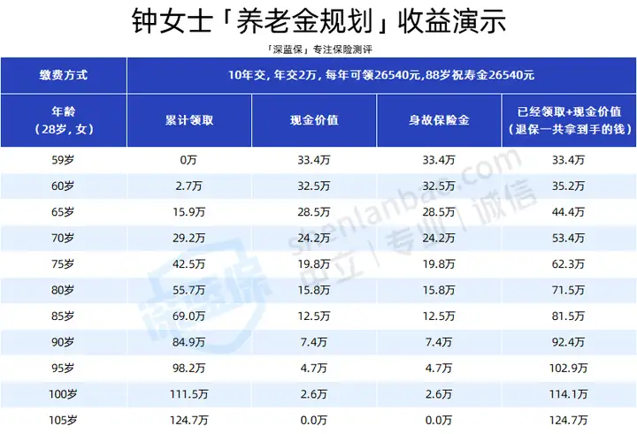 而剩下的2万预算,我们可以投入到养老年金险里,让自己老后比别人多拿一份养老金。