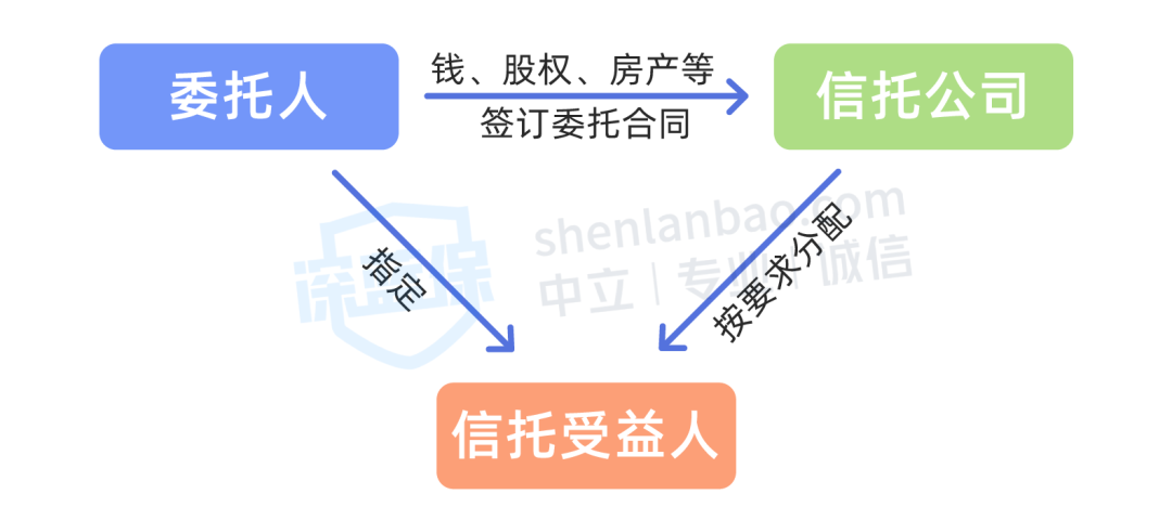 信托不一样,除了钱,也可以是其他资产比如房子、股权等。