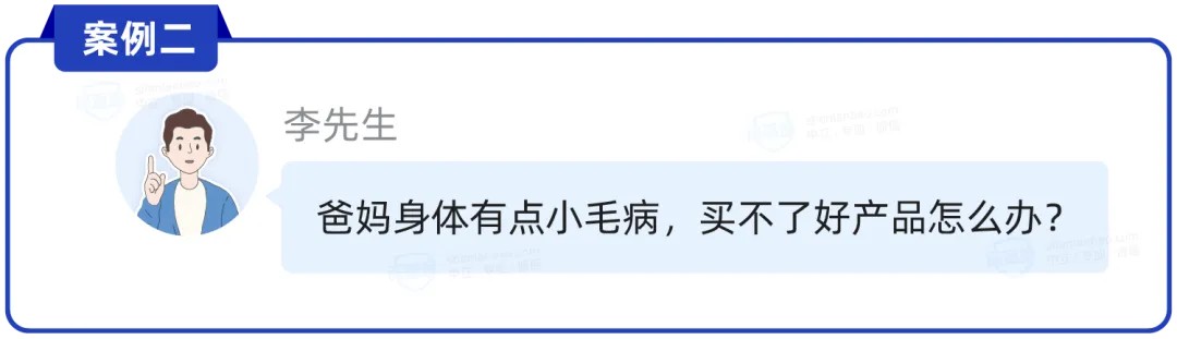 比如,爸妈年纪大了或者身体有点小毛病,不知道该买什么保险。如果不注意,可能买到不合适的产品,白白花了钱。