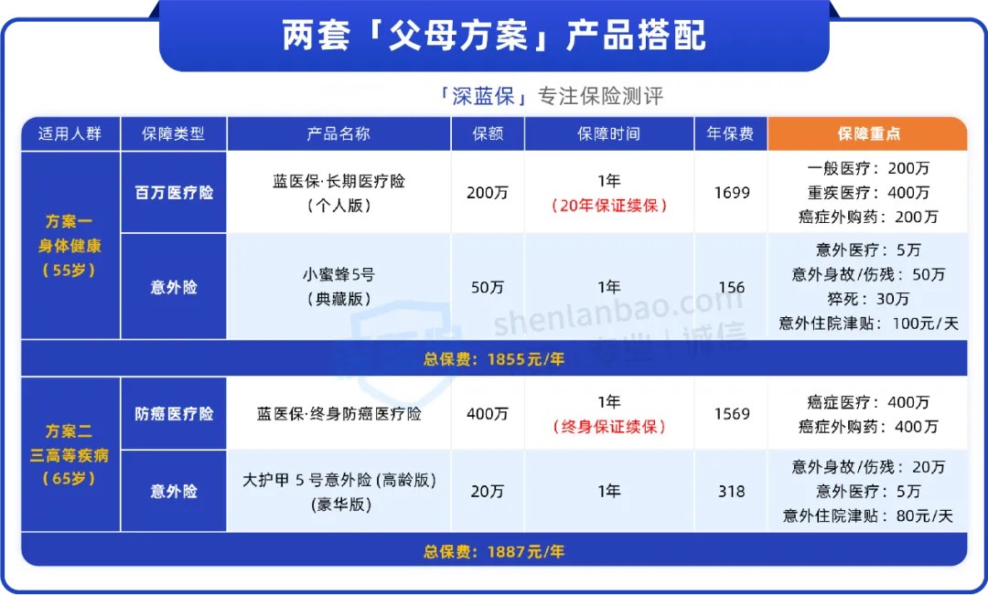 下面我们也分享两套高性价比的方案,适合不同身体情况的的爸妈,大家可以参考看看。