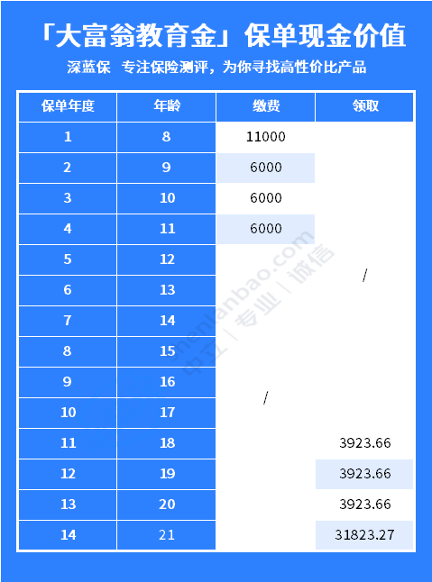 若干年后,孩子成人要上大学了,每年便可领取3923元作为学杂费、零花钱;21岁即将毕业,还可以一次性领取近3.2万。