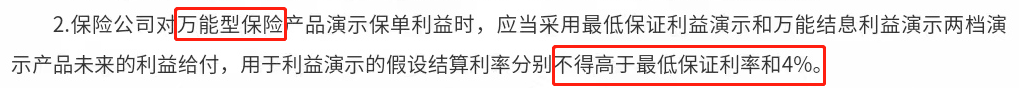 这次调整之后,万能险的演示利率就只剩两个档,不高于保证利率和 4%。