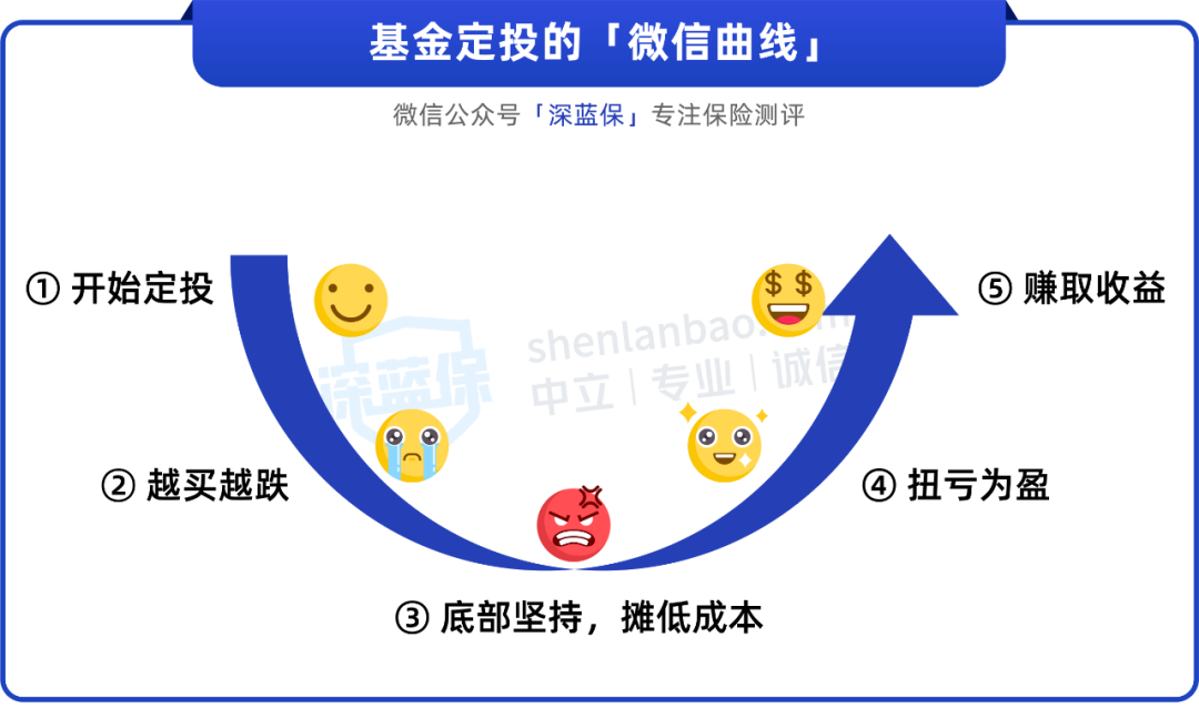 我们要做的,就是每个月定期买入,持续数年,等到盈利的时候卖出,实现基金定投赚钱的微笑曲线。
