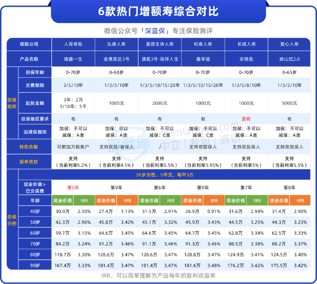 分别是:中国人寿的臻享传家、太平人寿的岁悦添富、泰康人寿的乐增寿、新华人寿的荣华世家、信美相互的传家有道(尊享版)、国华人寿的家庭储备金。