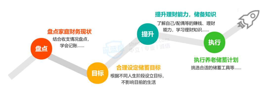 我们得先清楚自己目前的财务状况,并做好符合实际且合理的家庭财务规划。大致可以按照下面的四步走,后面也会一一展开来说:
