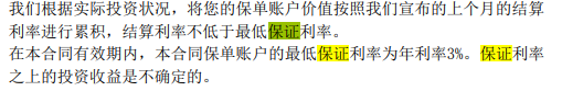 第一个是保证利率,也叫保底利率。即保险公司承诺的最低结算利率,不论未来利率再怎么降低,也不会低于这个值。