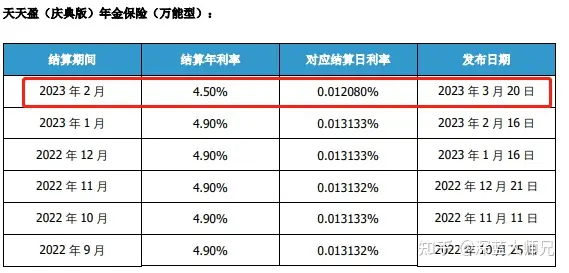 第二个是现行结算利率。结算利率可以作为我们挑选万能账户的参考,但它并不完全固定,保险公司每月会披露结算利率的变动情况。星海赢家(庆典版)可附加的万能账户是天天盈(庆典版)年金险,这个账户保底利率为3%,目前的结算利率为4.5%。