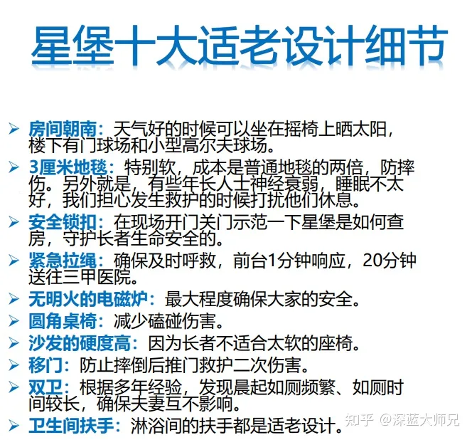 深蓝君我也给大家总结了星堡养老社区的几大亮点: