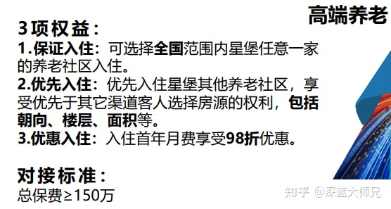答案是,150万。只要单张星海赢家(庆典版)的总保费达150万,就能锁定入住权,全国范围内的星堡都可以选择,而且入住后还能享有一定的优惠。