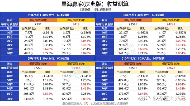星海赢家(庆典版)保证领取15/12年的版本,60岁时,收益率都能达到3%以上,