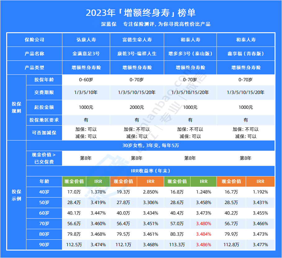 除了乐满满3号增额终身寿险之外,还有哪些增额终身寿险值得买呢?深蓝君下面为大家整理了一份2023年的热门增额终身寿榜单: