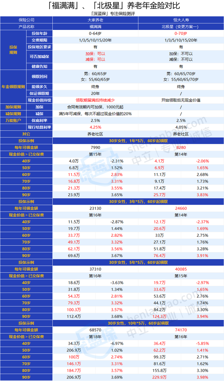 北极星的方案一,退休后拿的钱很多,只看5年交的例子,每年就能比福满满多拿近3千。