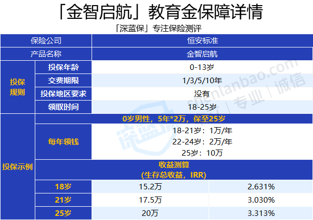教育金一般都只能保到20来岁,所以也是算保定期的年金产品。家里如果有孩子,打算给孩子攒大学学费、留学费用、创业金等,就可以考虑这种产品。再告诉大家一个小秘密,因为教育金的保障期比养老年金险短,并且很多产品收益还是很不错的,如果家里孩子符合投保条件的话,用来搞下理财也是很不错的选择。教育年金的回血时间也比较长。更推荐大家能专门拿出这部分钱来做规划,不要在投保前期退保。这里我挑选了很热销的金智启航教育金作为演示产品: