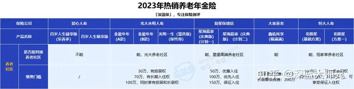 那么,这些产品中哪些是有养老社区服务的,哪家的缴费门槛更低,我们一起来看: