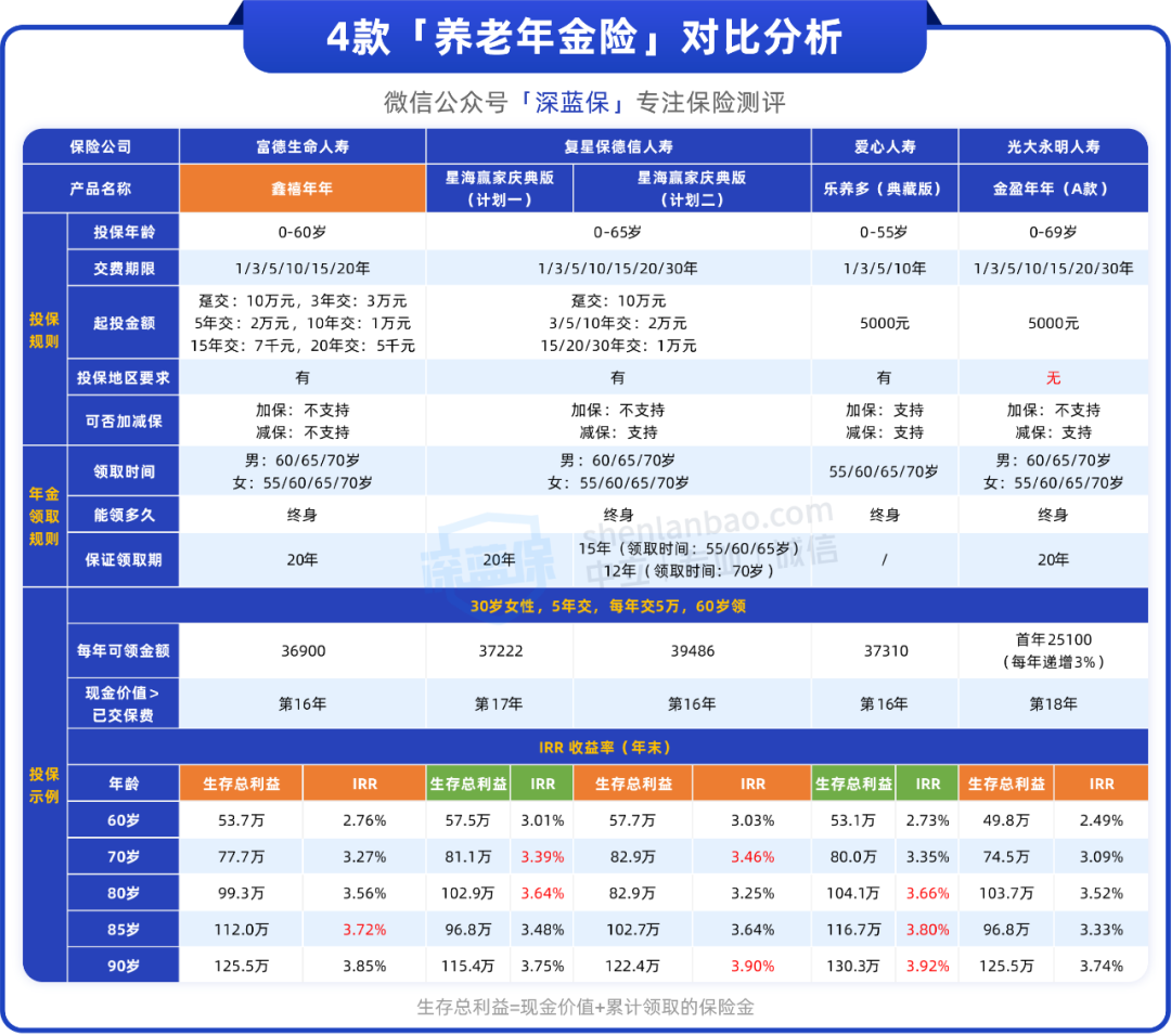 我们挑选了市面上其它3款高收益年金险,对比如下: