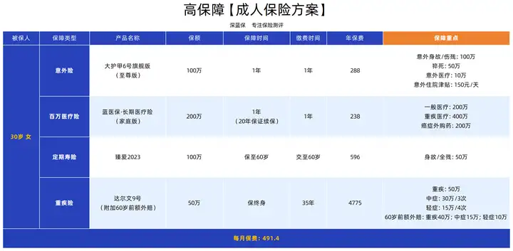 这样搭配下来,每月只要400多,能很好地把大病、身故带来的各项财务损失和风险,转嫁给了保险公司,从长远的眼光看,可以说是一笔相当划算的投资。