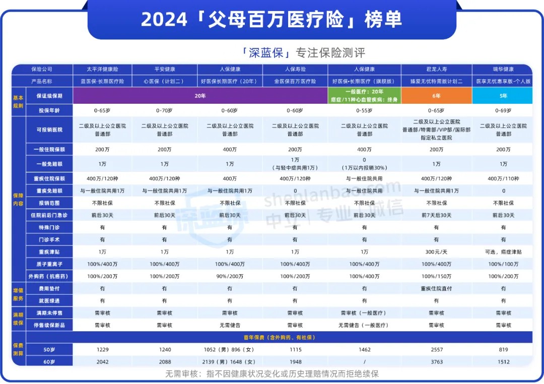 上面说到给爸妈买医疗险,优先考虑百万医疗险,那么应该给爸妈选择哪款产品?