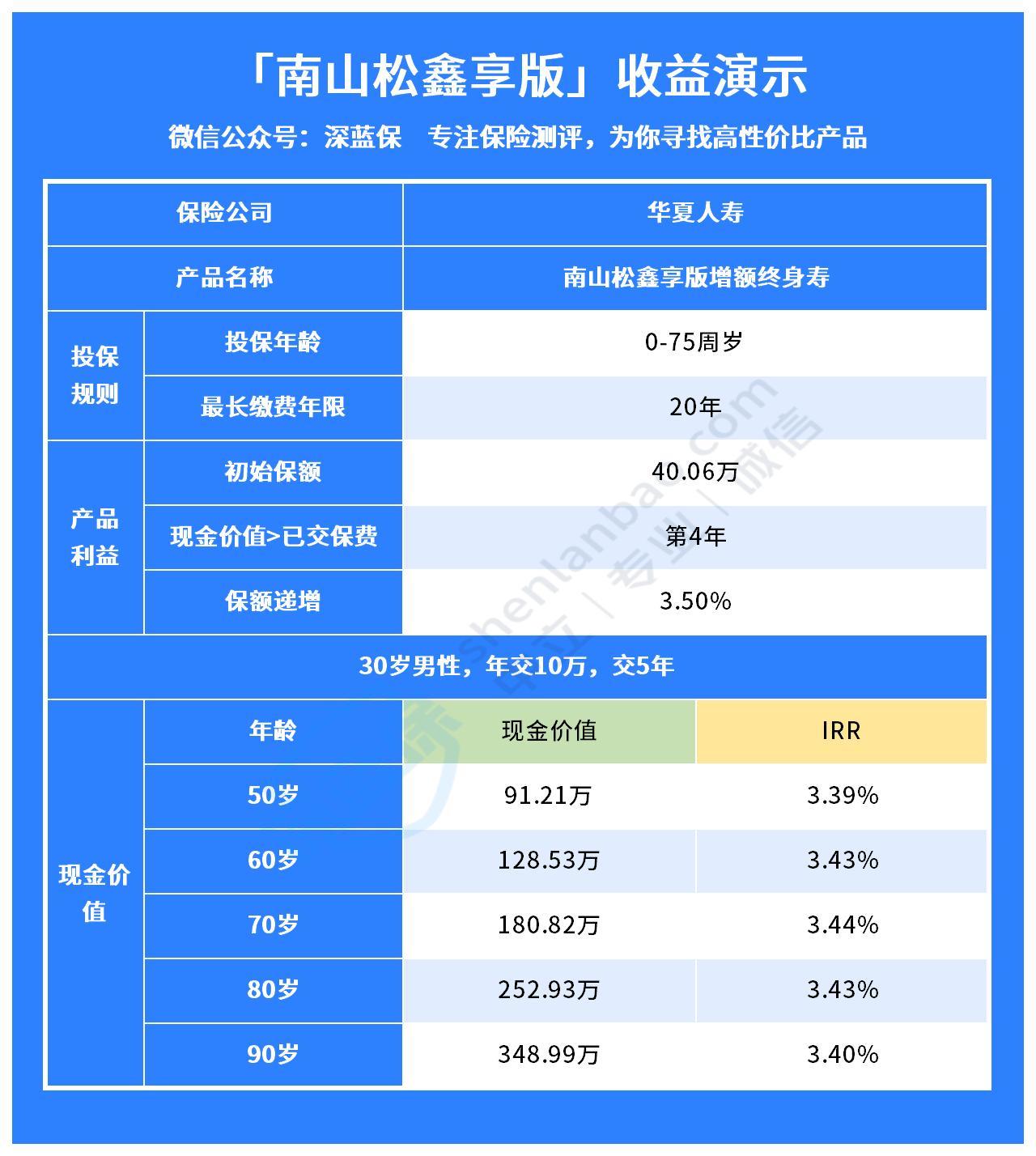 华夏南山松(鑫享版)是华夏人寿推出的一款增额寿产品,这款热门产品在很长一段时间内都受到大家的广泛关注。